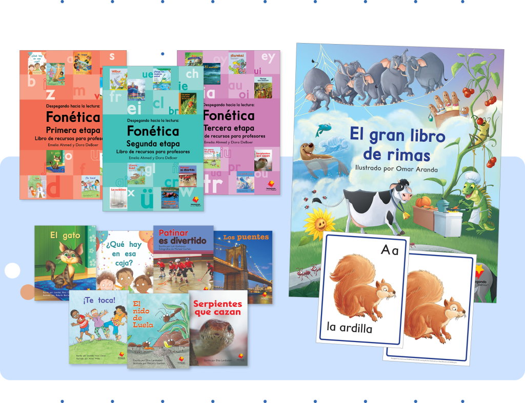 Despegando hacia la lectura: FONÉTICA™ es un programa de fonética en español auténtico diseñado para apoyar el desarrollo de la alfabetización bilingüe en los estudiantes que están aprendiendo a leer en español. A través del programa, los estudiantes también establecen conexiones interlingüísticas con las destrezas relacionadas de lectura y escritura en inglés. El programa ofrece un enfoque sistemático y explícito para la enseñanza de destrezas fundamentales iniciales en español usando componentes de alfabetización dentro de una unidad bien estructurada: desarrollo del lenguaje oral, conciencia fonológica y fonética.
