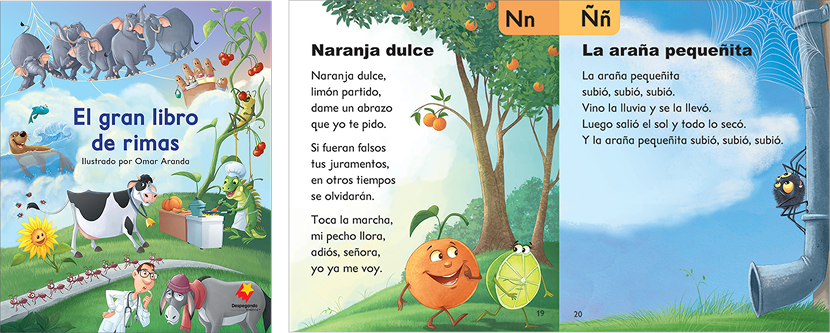 El gran libro de rimas es una colección en formato grande de ocurrentes poemas para compartir, con ilustraciones muy coloridas. Contiene una rima para cada letra del alfabeto. Las rimas pueden utilizarse en actividades de lenguaje oral, conciencia fonológica, para ampliar el vocabulario e identificar palabras de gran utilidad.