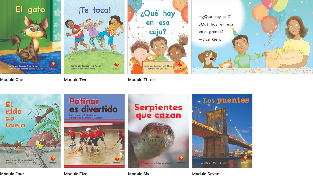 Los Libros decodificables, setenta títulos en total, han sido cuidadosamente diseñados para reforzar las destrezas que se presentan en cada módulo. Los textos de los Módulos uno, dos y tres son atrapantes y presentan grupos de personajes recurrentes. Los textos informativos se introducen en el Módulo cuatro y representan la mitad de los textos decodificables de los módulos superiores.