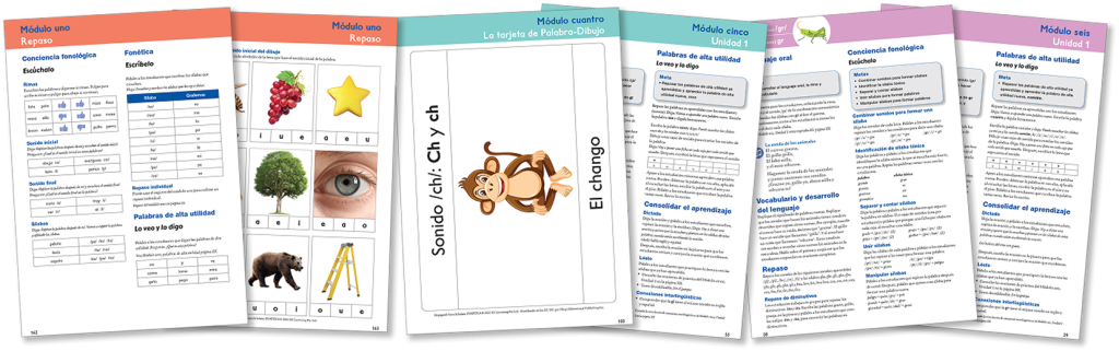 Cada módulo finaliza con un repaso de las correspondencias entre letras y sonidos enseñadas en el módulo. Con un diseño atractivo y totalmente a color, los Libros de recursos para maestros están pensados para que sean fáciles de seguir y claros en su organización.